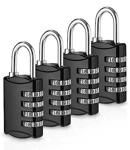 Xespis 4-pack kombinationslås, hänglås, liten, lås med nummerkod, tillverkad av zinklegering väderbeständig, kombinationslås 4 siffror, för skola, skåp, skjul, trädgård, gym