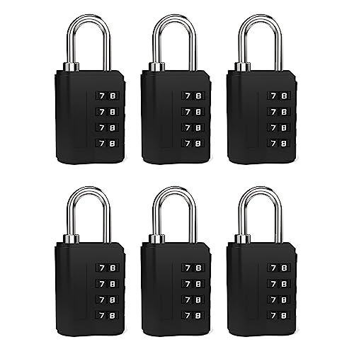 Kombinationslås med 6 siffror, hänglås, lås med nummerkod zinklegering, mångsidigt användbart för inomhus- och utomhusbruk i skolor, gymnastikhallar, skåp, verktygslådor och bagage (svart)