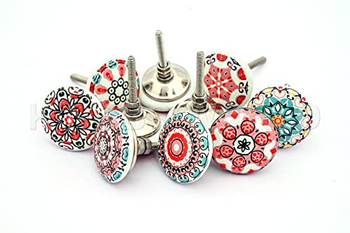 Möbelfull finess keramiska knoppar för skåp byrå låda och möbler handmålad antik boho skåp draghandtag flerfärgade inredningsknappar – paket med 20