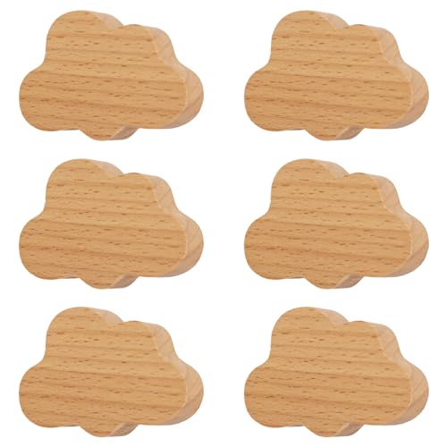 MOROBOR 6 st molnformade träknoppar ett hål bok trähandtag trä skåp skåphandtag knoppar för byrå med skruvar och expansionsrör