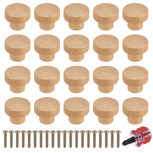 Möbelknoppar i Trä, Garderobsknappar, Köksknopp, Träknappar, Möbelhandtag, Garderobshandtag för Skåp, Lådor, Byrå, Möbler Paket med 20 Knoppar och Skruvar - 35mm