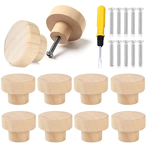 Jokily 10 stycken trälådhandtag, möbelknappar, trälådhandtag, skåpknappar med skruvar, handtag möbelknappar, knoppar för skåp och lådor, rund 35 x 25 mm