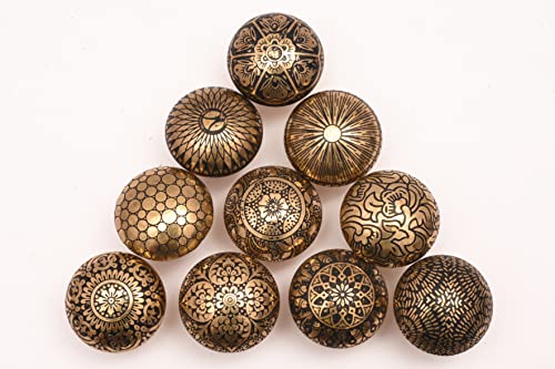 KNOBSWORLD Uppsättning av 10 mässingsknoppar - köksskåp, dragknoppar för skåp, bröst, möbler, lådhandtag - mässingsmönstrade knoppar av