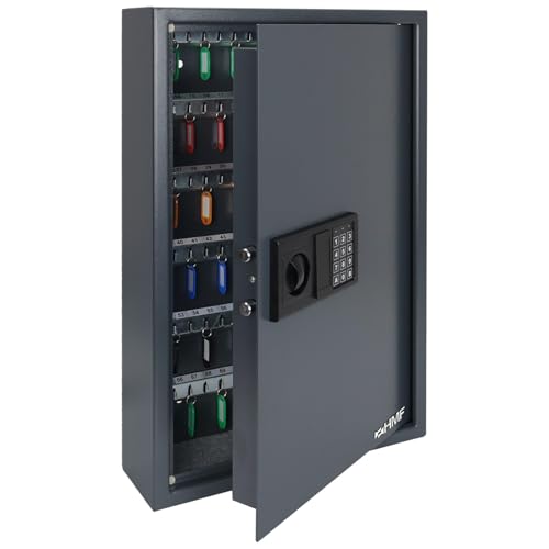 HMF Kassaskåp nyckelring med numerisk kod, skåp nyckelring med elektroniskt lås | 132 krokar | 66,5 x 43 x 13 cm | antracit
