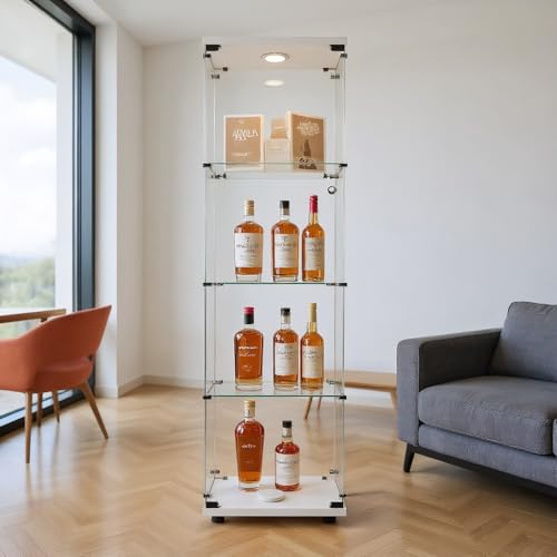 FOERPL vitrinskåp, LED-vitrinskåp, glasvitrinskåp för samlingar, 4 nivåer, skåp med lås, möbler för bar