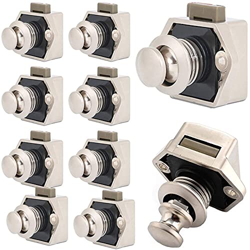 MTSmart RV metall tryckknapp skåp lås, kvadratiskt RV-skåplås för husbilar, husvagnar, båtar, yachter, marin, husbil skåp, lås nyckellös (krom 10 st)