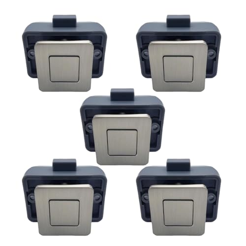 MTSmart RV metalltryckknapp, skåplås, kvadratiskt husbilar, skåplås, båtar, yachter, marin, husbil, skåp, lås nyckellös (nickel 5 st)