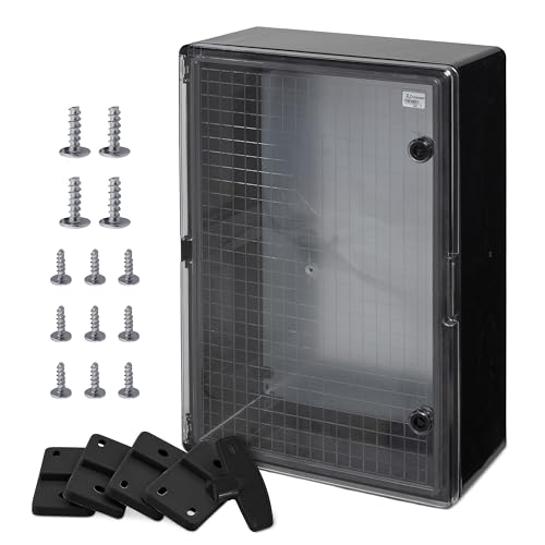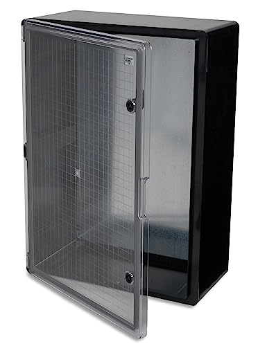 Väggskåp, växelskåp, IP65, industrihus, tomt hölje, ABS plast, tomt skåp, monteringsplatta, lås, BOXEXPERT serie Fleet, olika storlekar, svart, transparent (500 x 400 x 240 mm)