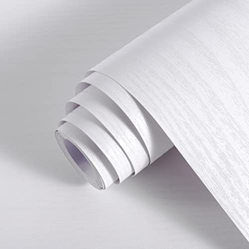 Livelynine 40CMx5M PVC träfolie självhäftande folie Träutseende Vit möbelfolie Trä Självhäftande folie Bänkskiva Kök Limfolie för möbler Bord Skåp Skrivbord Kök Skåpfolie Stickning