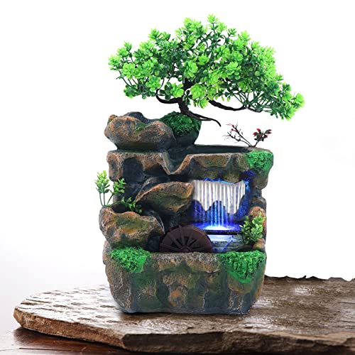 gegeweeret Bordsfontän vattenfall dekoration vattenfunktion, LED-rumsfontänbelysning, för skrivbordsdekoration, TV-skåp, sovrum