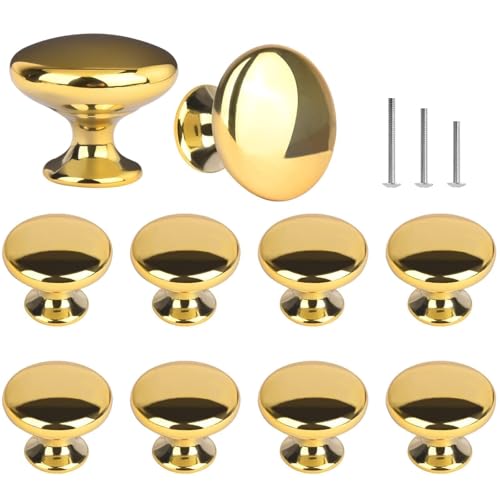 ShipeeKin 10x Guldpolerat Kromskåp Hårdvara Rund Svampdörr Draghandtagsknopp 30 mm för Skåp, Garderob, Låda, Sovrum, Badrumsställ Möbler