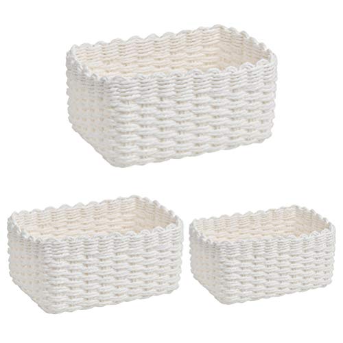 DODUOS 3 stycken förvaringskorgar av återvunnet papper rep, 3 storlekar, förvaringskorgar, flätade hyllkorgar, organisatör för skåp, badrum, kök, sovrum (vit)
