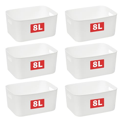 Cetomo 8 l x 6 förvaringskorgar, förvaringsbehållare, hushållsorganisatör med handtag för kök, kontor, bänkskivor, skåp, sovrum och badrum
