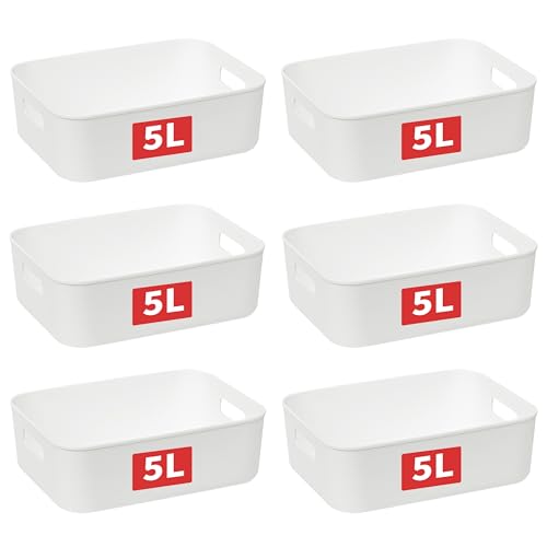 Cetomo 5 L x 6 förvaringskorg, förvaringsbehållare, hushållsarrangörer med handtag för kök, kontor, bänkskivor, skåp, sovrum och -badrum