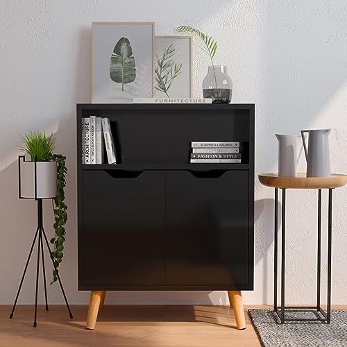 Homgoday Skänk med 3 fack byrå sidoskåp vardagsrumsskåp multifunktionellt skåp för hall sovrum vardagsrum högglans-svart 60 x 30 x 72 cm träbaserade material