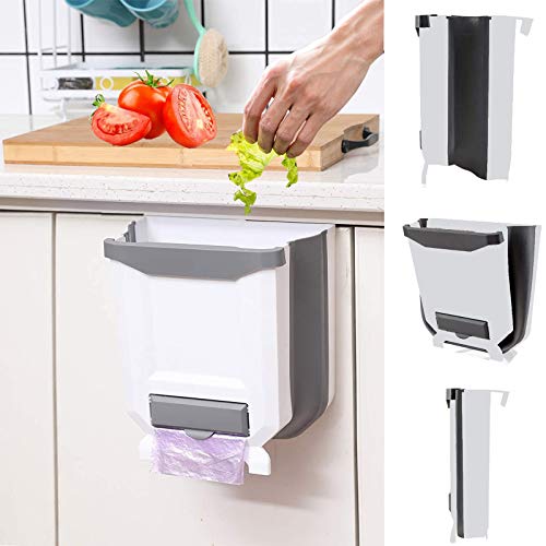 SENENQU Hängande soptunna 9 l för kök, kök, hopfällbar hängande skräpburk med skrapa för flera dörrar, skåp, sovrum, kontor, badrum, sovsal hemma