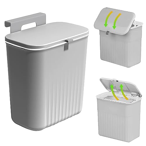 Tiyafuro Papperskorg för köksbänk eller diskho, 9 liter, liten hängande papperskorg med lock för skåp/badrum/sovrum/kontor/camping, monterbar, inomhus, kompost, hink, grå