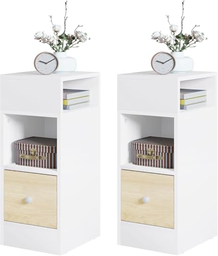EUGAD Set med 2 smala nattduksbord, sängbord med 2 öppna fack och låda, nattduksbord 25 x 30 x 66 cm, platsbesparande skåp för sovrum, vardagsrum, av spånskiva, ek, 0011CTG-2
