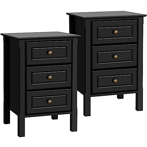 Yaheetech Uppsättning av 2 nattduksbord, nattduksbord med 3 lådor, resårsäng nattduksbord, sidobord, stabil soffkonsol, skåp för sovrum/vardagsrum, svart
