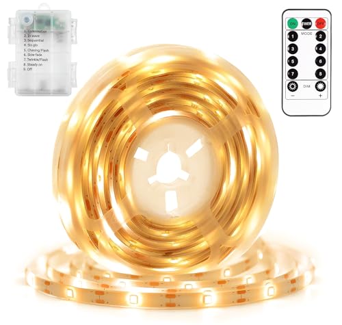 DBFAIRY LED-remsa batteridriven, 2 m 60 LED-remsor batteri med fjärrkontroll timer, vattentäta ljuslister för sovrum, skåp, hem, fest, dekoration (varmvit)