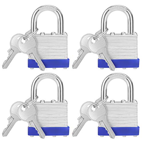 Belle Vous Hållbart Hänglås i Laminerat Stål med 2 Nycklar (4 Pack) – 6 mm Lås – 6,4 x 4,2 x 2,4 cm – Vädersäkert Inomhus/Utomhus Lås för Förvaring & Skåp
