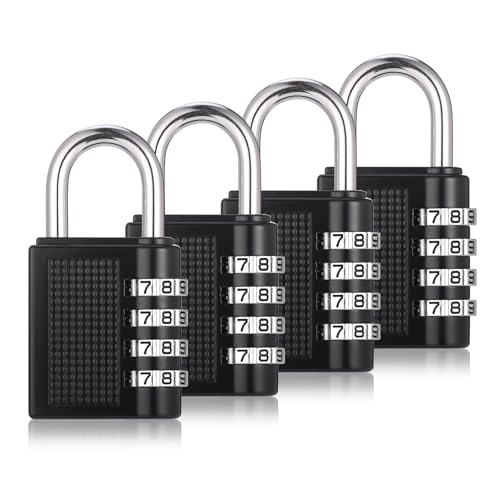 JIANTA 4 St Kombinationshänglås, Slitstarkt Metallhänglås För Gymskåp, Vattentätt Kombinationslås Med Kod För Skåp Utomhus Grindskjul (B, Svart)