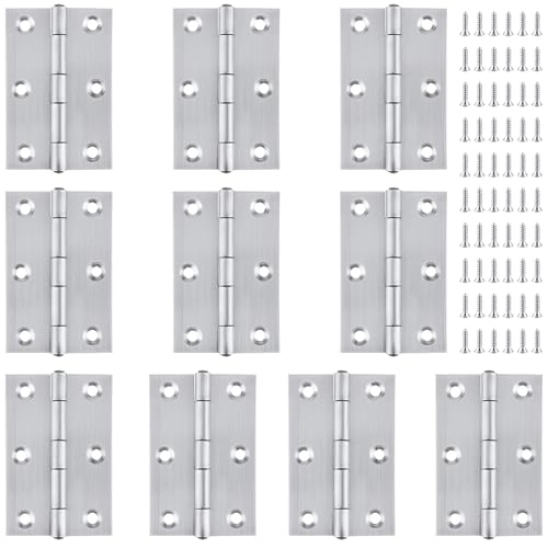 YIXNSW 10 stycken 75 mm rostfritt stål gångjärn gångjärn rostfritt stål utomhus dörrgångjärn rostfritt stål gångjärn vikbara med 60 skruvar för skåp fönster dörrar silver