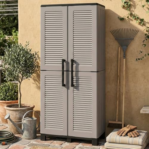 Dmora Multipurpose garderob utomhus eller inomhus, 2-dörrars skåp och 3 justerbara hyllor av polypropen, 100% Made in Italy, cm 68x37h169, färg Grå