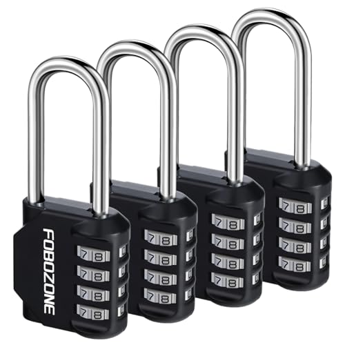 Kombinationslås, FOBOZONE 4-siffrigt utomhus vattentätt återställbart kodhänglås, för gymskåp, skåp, skjul, hasp grind verktygslåda, skolskåp lås (L svart 4-pack)