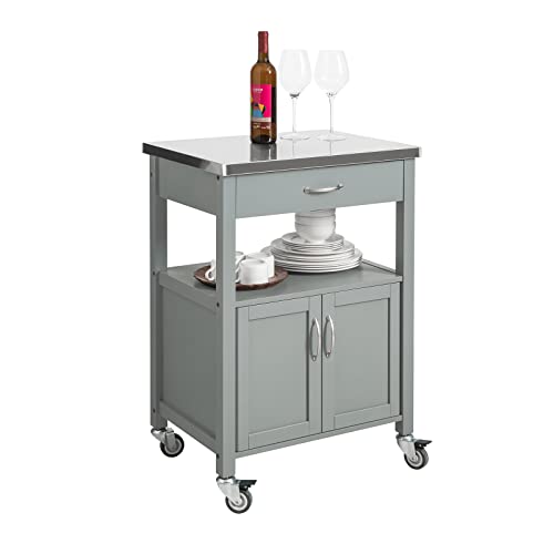 SoBuy Köksvagn med Arbetsyta Serveringsvagn med Hjul Sido Bord i Trä Rollvagn Kökshylla Stående Mångsidig Skåp för Kök, Utomhus & Sovrum Ljusgrå 60x44x92cm FKW22-HG