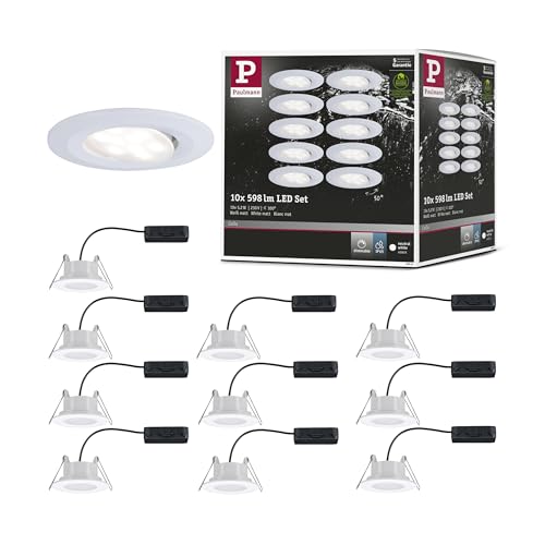 Paulmann 99924 LED infälld belysning Calla rund set om 10 inkl 10x6,5W IP65 dimbar infälld spotlight vit matt skåpbelysning plast infälld belysning 4000K