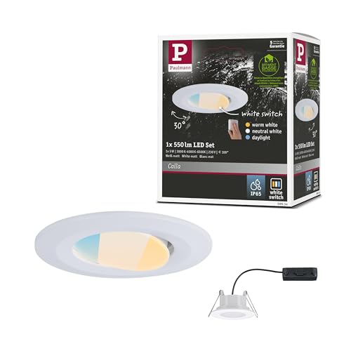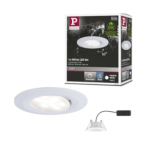Paulmann 99930 LED infälld belysning Calla rund inkl 1x6,5W IP65 dimbar infälld spotlight vit matt skåpbelysning plast infälld belysning 4000K