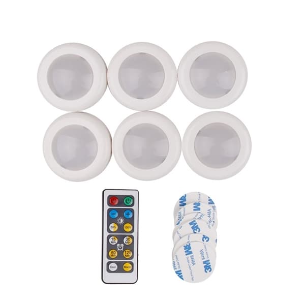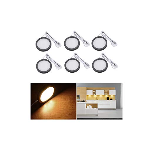 Midore Underbyggd lampa kök LED set med 6 15 W rund skåpsbelysning LED skåpbelysning vitrinbelysning med kontakt och 3 m lim 3 000 K