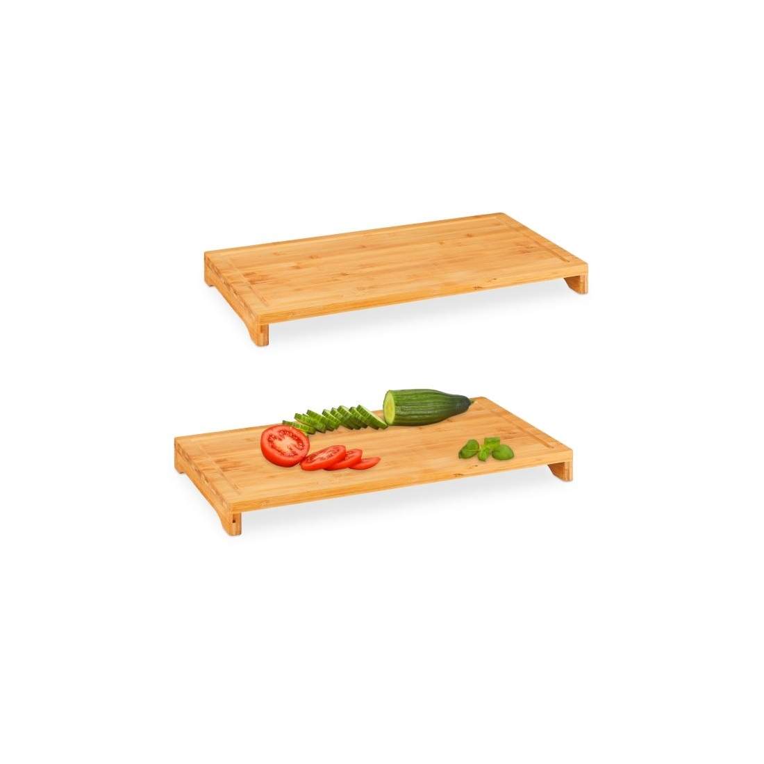 Relaxdays skärbräda bambu med skåra, träbricka med kant, spisskydd och serveringsbricka, 2 x 56,5 x 50 cm, natur
