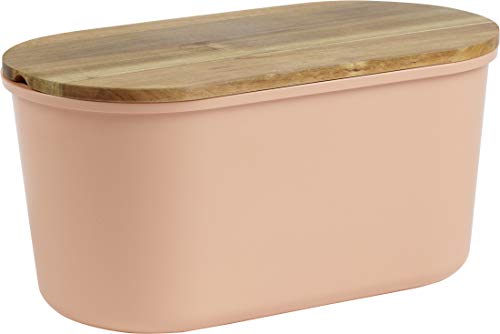 ECHTWERK Brödlåda "FRESH", brödförvaring, platsbesparande förvaringslåda, brödkorg med lock och skärbräda av akaciaträ, för 1 kg bröd, 37 cm x 22 cm x 17 cm, laxrosa