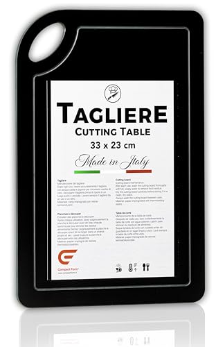 IPEA Elegant och solid HPL trycksatt skärbräda i trä - tillverkad i Italien - 33 x 23 cm - svart rektangulär skärbräda för ost, aptitretare, grönsaker, bröd, salami - bricka med öljetter