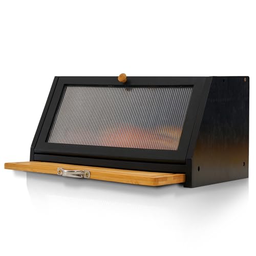 YOUDENOVA Brödlåda bambu Eco brödlåda brödkorg med skärbräda förvaringslåda kök brödförvaring brödbehållare visualiserad för bröd, rostbröd, svart, 39 x 26 x 32,5 (L x B x H) cm