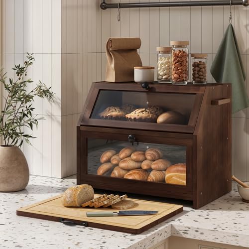 YOUDENOVA Brödlåda Eco brödkorg med skärbräda förvaringslåda kök brödförvaring brödbehållare visualiserad för bröd, rostbröd, 39 x 26 x 32,5 (L x B x H) cm, brun