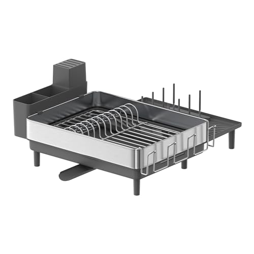 SONGMICS Diskställ för diskdränering, expandbar disktorkställ, rostfritt stål med roterbar pip, redskap, kopp, glas, skärbräda och grythållare, silver och grå KCS037G01