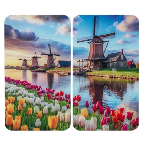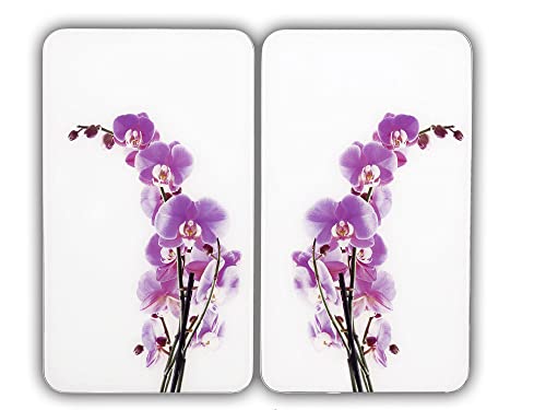 MaximexSpisöverdrag universal orkidéblomma set om 2 – set om 2 – skydd för spisar och skärbräda i glas för alla typer av spisar, härdat glas, 30 x 1,8 – 5,5 x 52 cm, flerfärgad