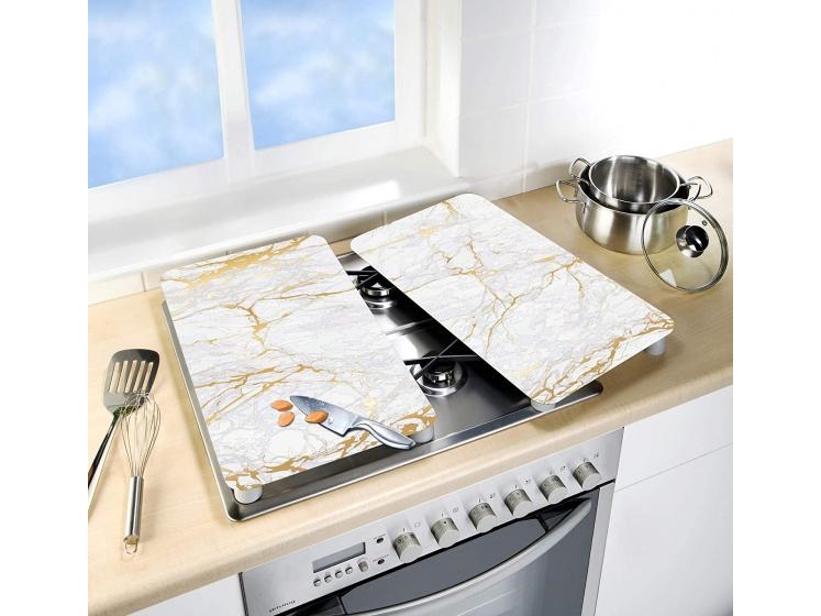DarHaus Spisskyddsplatta 60 x 52 Ceranfältsskydd 1 del universellt skydd kokplattor glas induktion spis skydd dekoration skärbräda stänkskydd, MARMOR