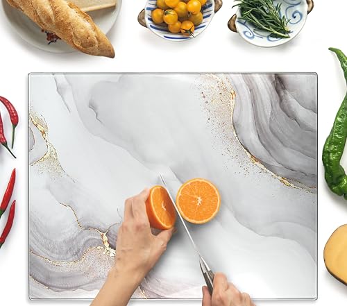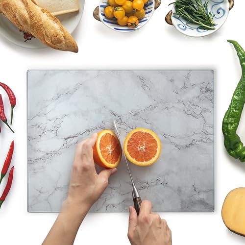 Kitchenville Skärbräda i Härdat Glas 50×40 cm – Kvalitet Bänkskiveskydd & Skärbräda för Kök – Reptålig, Värmetålig, Hygienisk & Lätt att Rengöra – Grå Marmoreffekt