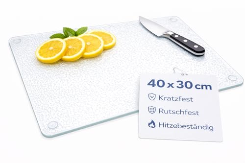 Skärbräda i glas 40 x 30 cm, köksbräda, med halkfria fötter, hygienisk, värmebeständig,