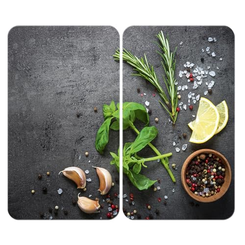 WENKO Spisskyddsplatta universell örter, set om 2 spisskydd för alla typer av härdat glas, spisskyddsplattor kan också användas som skärbräda, hygienisk, rep- och slagtålig, 30 x 52 cm
