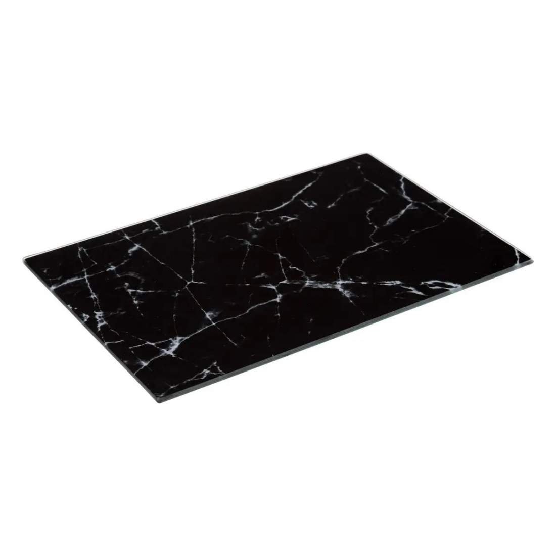 DESTALYA Skärbräda Härdat Glas | 30 x 40 cm Bänk Med Svart Marmormönster | Värmetolerant Splitterbeständig | Dekorativ Bricka för Kök (L)
