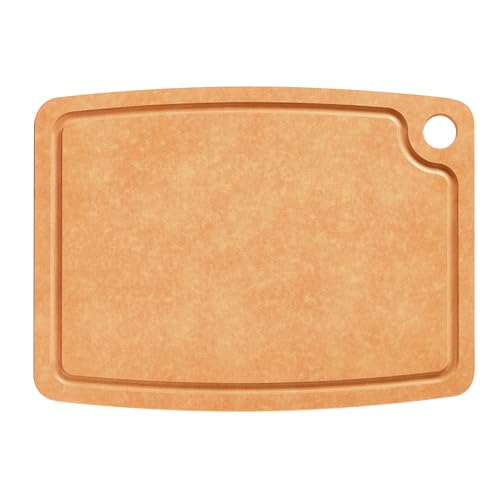 BESTCOOK Träfiber skärbräda med juicespår, diskmaskinssäker kompostit skärbräda med halkfria fötter, hög densitet, BPA-fri, knivvänlig, giftfri, hållbar för kök kött frukt