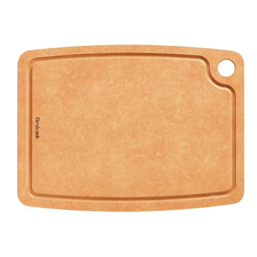 BESTCOOK Skärbräda i träfiber för kök, BPA-fri, vändbar, hållbar skärbräda med juicsspår, icke-porös diskmaskinssäker, halkfri, knivvänlig för kött bröd frukt, naturlig
