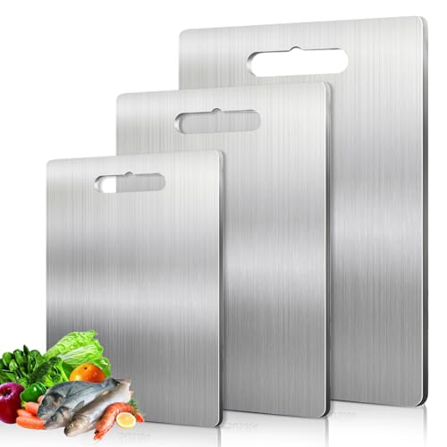 MEYAGOT 3 st skärbräda i titan för kök, skärbräda i rostfritt stål, kökskärbräda i rostfritt stål, för kött, frukt, grönsaker, barnmat, diskmaskinssäker