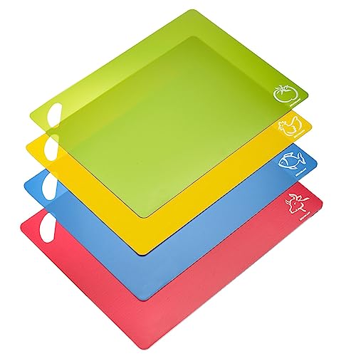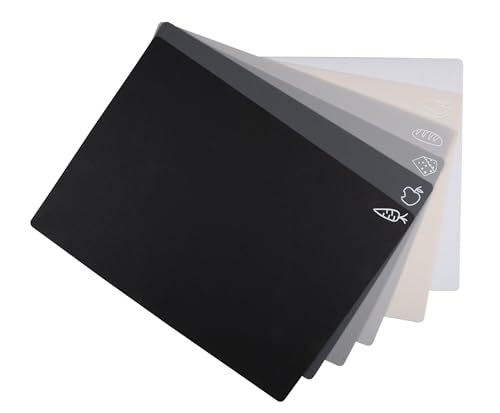 Flexibla skärbrädor i plast i unika moderna neutrala färger med matikoner, fotouzy BPA-fri, icke-porös, 100% halkfri baksida och diskmaskinssäker, set med 4
