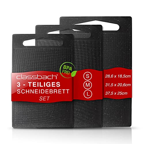 classbach® Set med 3 skärbrädor, diskmaskinssäkra köksskärbrädor med juicerranna BPA-fri av PP-plast, skärbräda med juicespår livsmedelssäker, svart